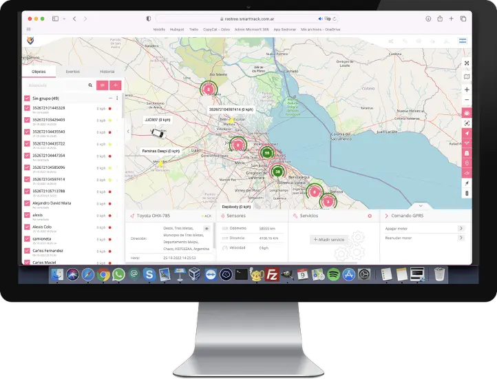 Plataforma 100% web para control y rastreo satelital de vehículos y dispositivos móviles. Compatible con dispositivos de diferentes fabricantes, consolidando operaciones en un único sistema.